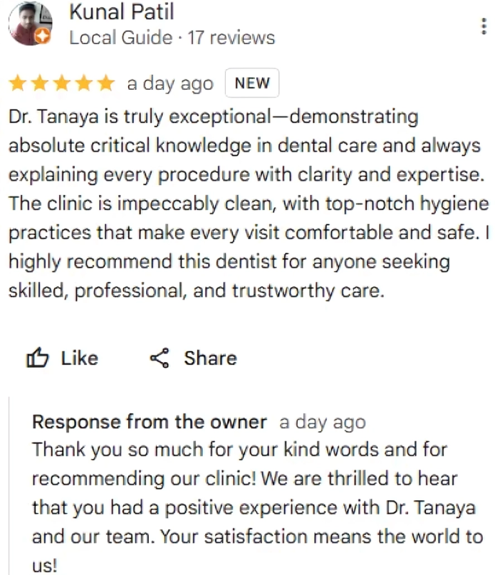 We maintain a clean and safe environment in the clinic. All tools are properly cleaned, the staff wears protective gear, and we sanitise surfaces regularly. If you’re visiting a dentist near me and are concerned about hygiene, that’s a valid and important question. We also give time between patients to clean everything properly. Patients often tell us they feel safe here just by how we manage cleanliness. We treat this as a non-negotiable part of care — not just something we say.